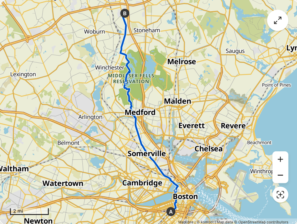 I recently had to travel to the Boston area for an event in the suburb of Woburn.  Whenever I travel, I always try to find some time to see something interesting or explore something new and when checking out Woburn I couldn’t help but notice that Middlesex Fells reservation sat between Boston and Woburn when I did a quick search for trails in the area.  That’s when the crazy idea hit of why take a cab from Boston when I can hike it.